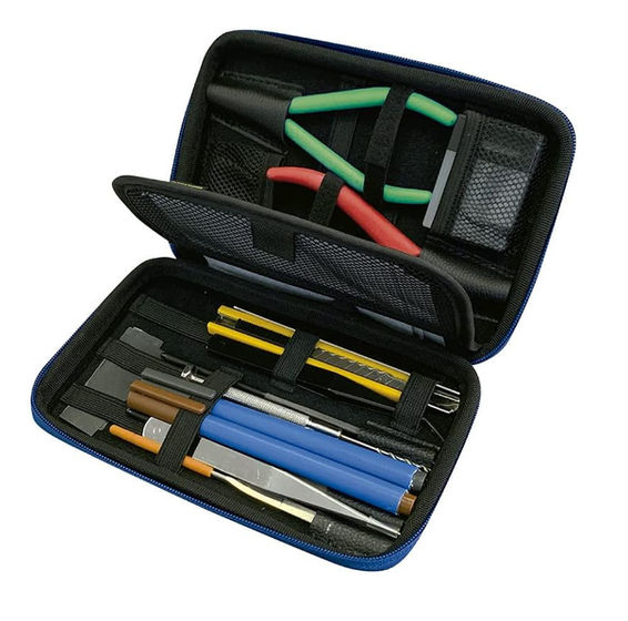 マジックテープやネットポケット、ゴムバンド、ニッパーの刃こぼれを防ぐ、ニッパーホルダー、棒ヤスリホルダーなどの多彩なギミックが沢山。自分に必要な工具を自由自在に収納できます。